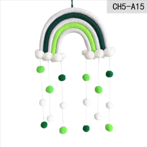 Dibuat dengan tali kapas lembut , loket pelangi berwarna-warni ini menambahkan sentuhan unik pada mana-mana bilik kanak-kanak atau bilik kanak-kanak . Menampilkan aksen bebola rambut dan reka bentuk gantung , ia mewujudkan suasana yang selesa dan ceria. Sesuai untuk hiasan dinding atau sebagai hadiah yang bermakna.
